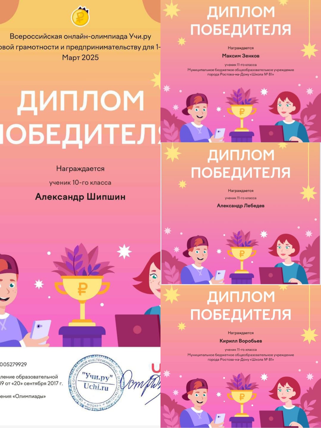 254 –Дипломами победителя, 248 — Похвальными грамотами призера, 217-